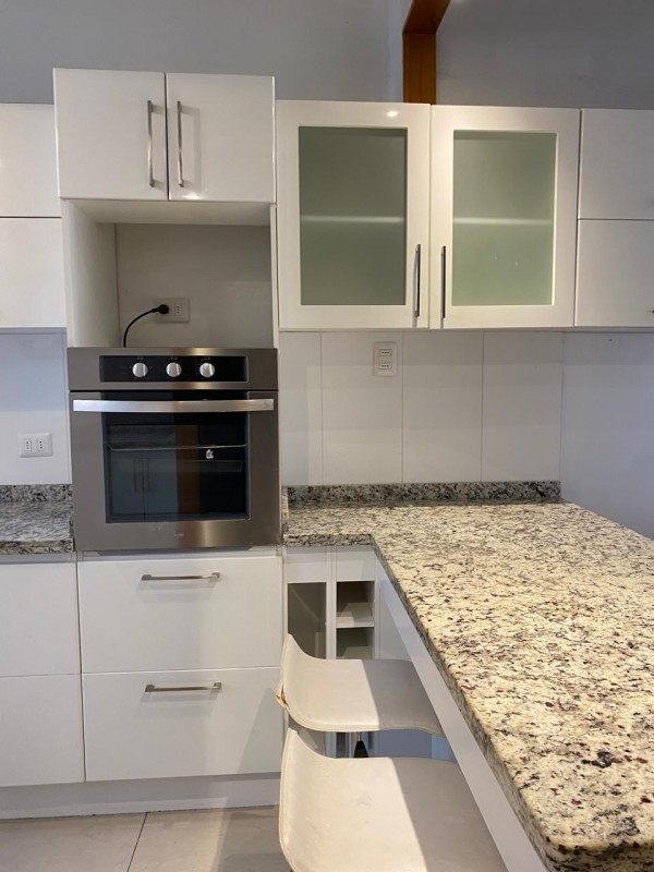 1 cocina concepto abierto con mesones de granito, moderna, con encimera y horno empotrado